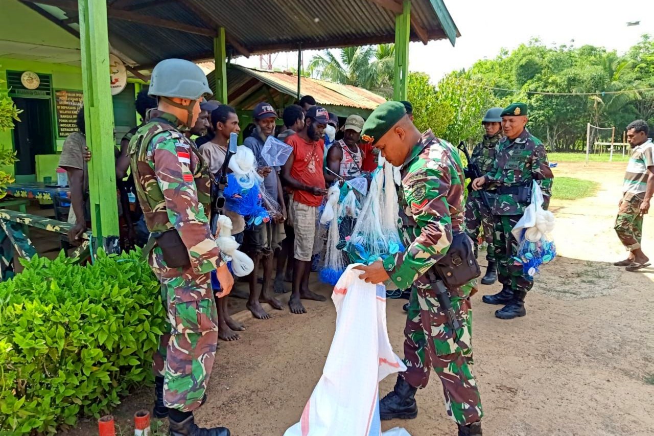 Satgas Yonif MR 411/PDW Kostrad Serahkan Bantuan Jala Ikan Untuk Warga Erambu