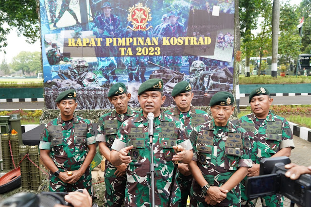 Rapat Pimpinan dan Apel Komandan Satuan Kostrad TA 2023 mengandung dua tema berbeda dimana Rapat Pimpinan bertema “Kostrad Patriot NKRI Yang Profesional, Siap Mendukung Pembangunan Nasional,” dengan tujuan mengevaluasi Progja dan Anggaran Kostrad TA 2022 serta mensosialisasikan Program dan Kegiatan Prioritas TA 2023.